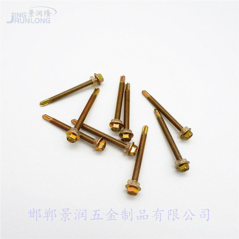 ????????邯鄲景潤(rùn)五金制品有限公司常年生產(chǎn)直徑ST5.5(Φ5.5)等規(guī)格的景潤(rùn)隆品牌六角法蘭面鉆尾螺絲,具體長(zhǎng)度可根據(jù)要求商定,其他頭型有沉頭 /六角頭/六角華司/六角法蘭頭/盤(pán)頭/圓頭/大扁頭/圓頭華司等多種可以選擇訂購(gòu)。六角鉆尾螺絲尺寸規(guī)格參考右圖。
